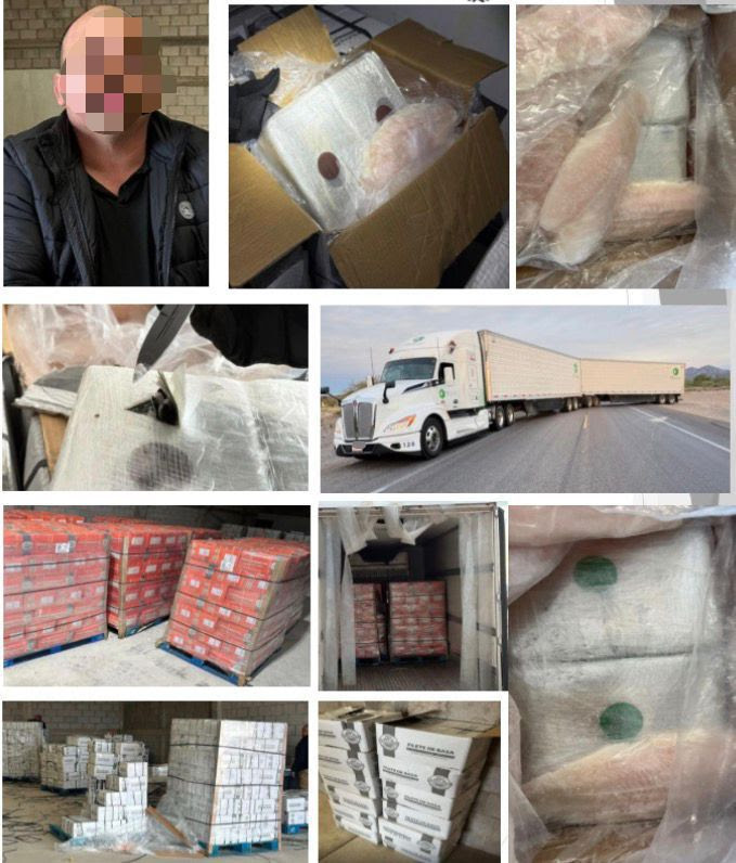 Los hechos ocurrieron sobre la carretera federal número 2, tramo Caborca-Sonoyta, donde personal de seguridad detectó un tractocamión con dos cajas refrigeradas que transportaba la droga oculta en 400 paquetes, camuflados en cajas de pescado congelado al alto vacío.