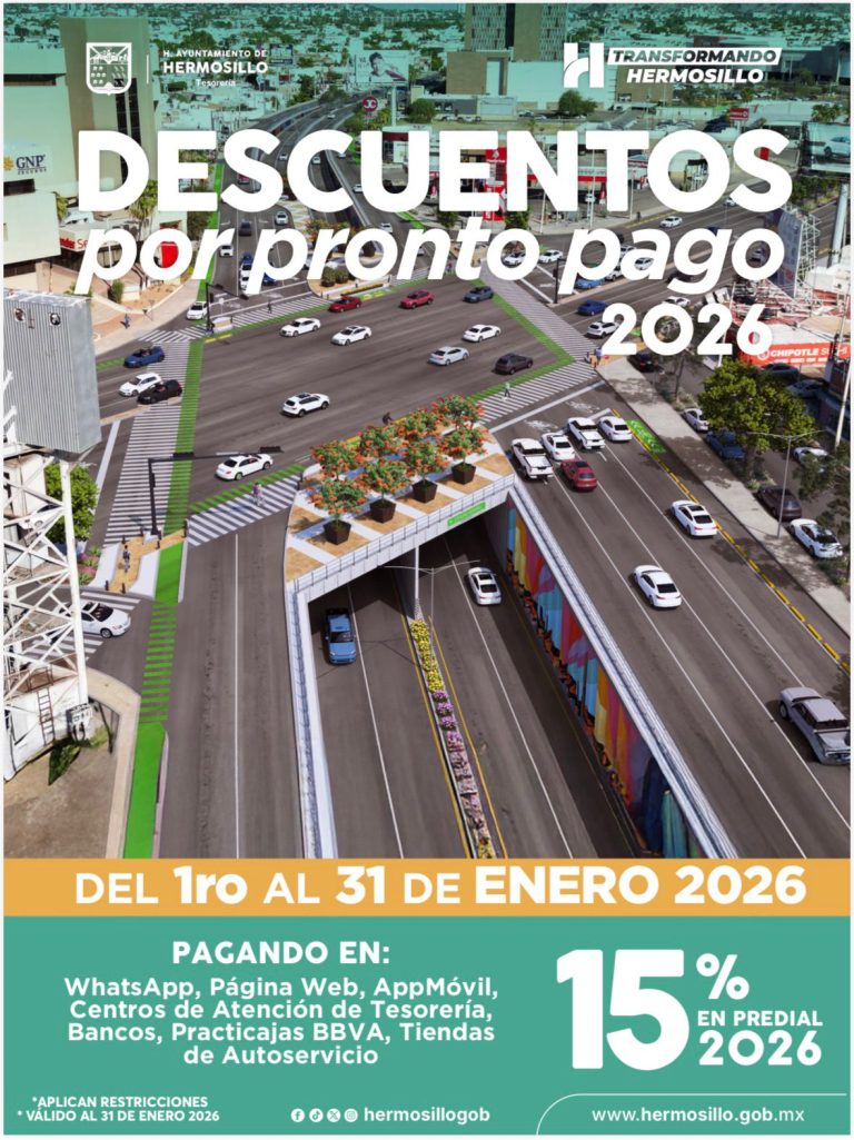Invita Ayuntamiento de Hermosillo a aprovechar últimas semanas del 15% de descuento en pago de Predial 2026