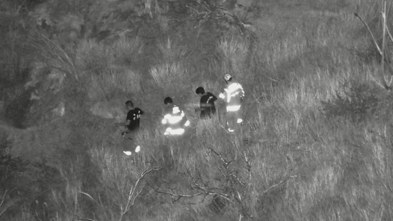 Eran las 21:40 horas cuando se ubican por medio de la cámara térmica de uno de los drones, por lo que de inmediato se pasan las coordenadas a los bomberos.
