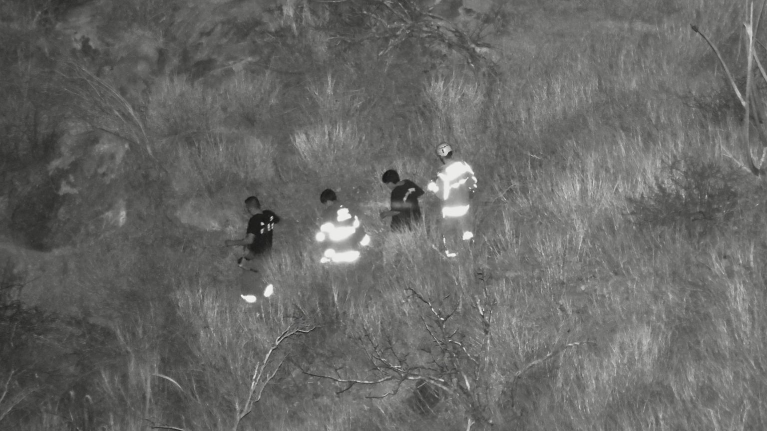 Eran las 21:40 horas cuando se ubican por medio de la cámara térmica de uno de los drones, por lo que de inmediato se pasan las coordenadas a los bomberos.