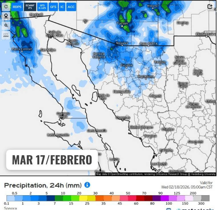 Finalmente, se prevé un aumento en las temperaturas máximas para el próximo fin de semana, con tardes cálidas donde se proyectan valores de 30 °C a 35 °C en la región centro y sur del estado de Sonora.