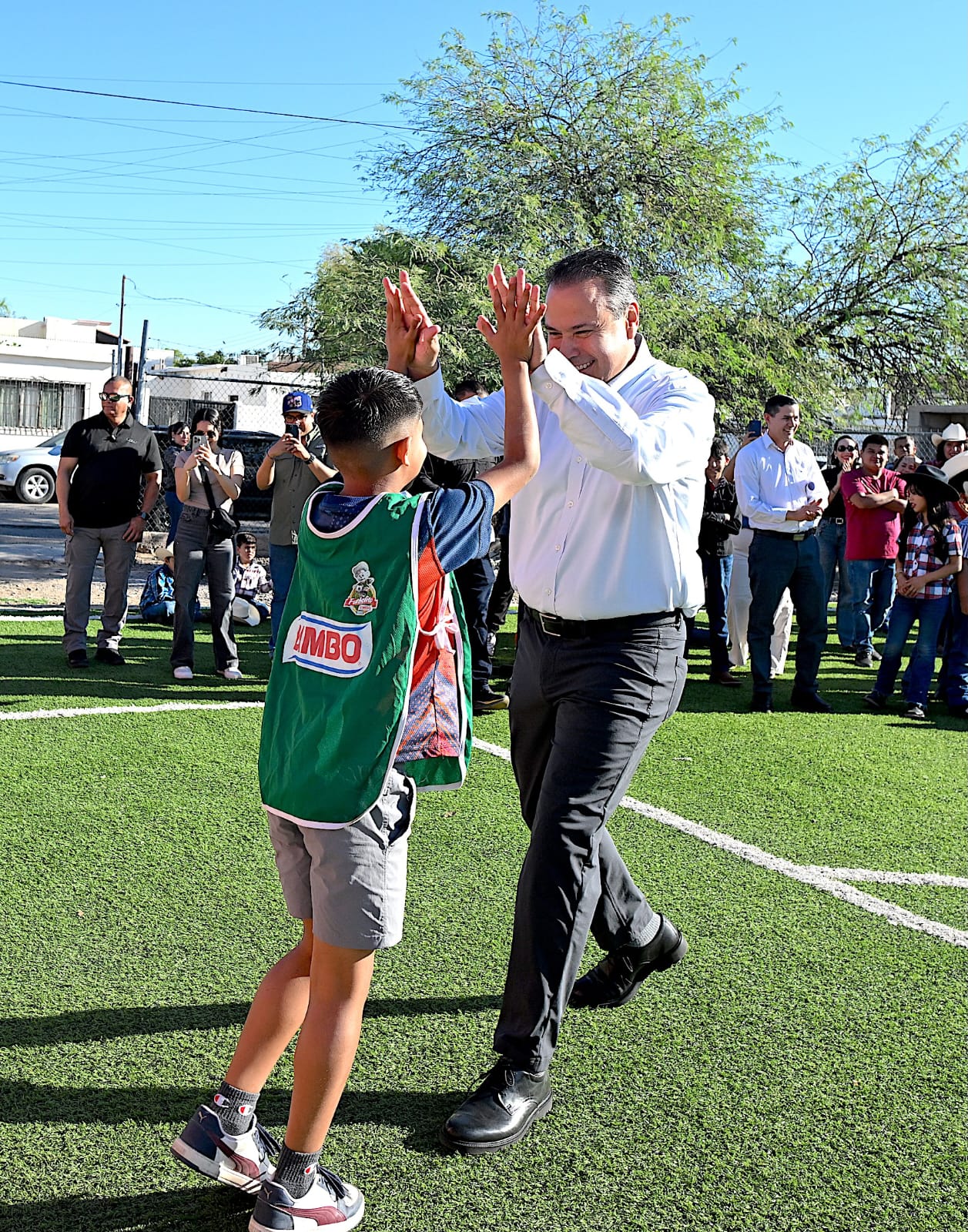 Como un ejemplo de trabajo en equipo entre gobierno y ciudadanía consideró el presidente municipal Antonio Astiazarán la construcción de un campo de fútbol con pasto sintético, con inversión tripartita de 433 mil 774 pesos, cuya entrega formal encabezó en la primaria Jaime Torres Bodet, de la colonia Olivares.