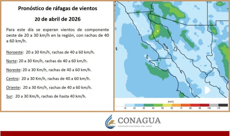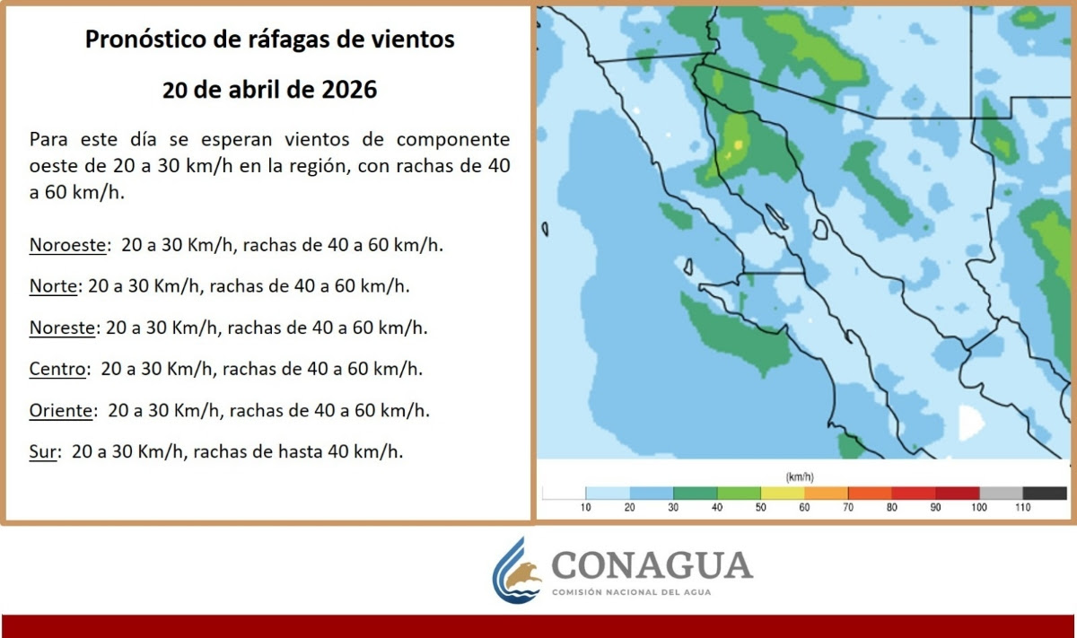 También se pronostican rachas de viento de moderadas a intensas, en la región.